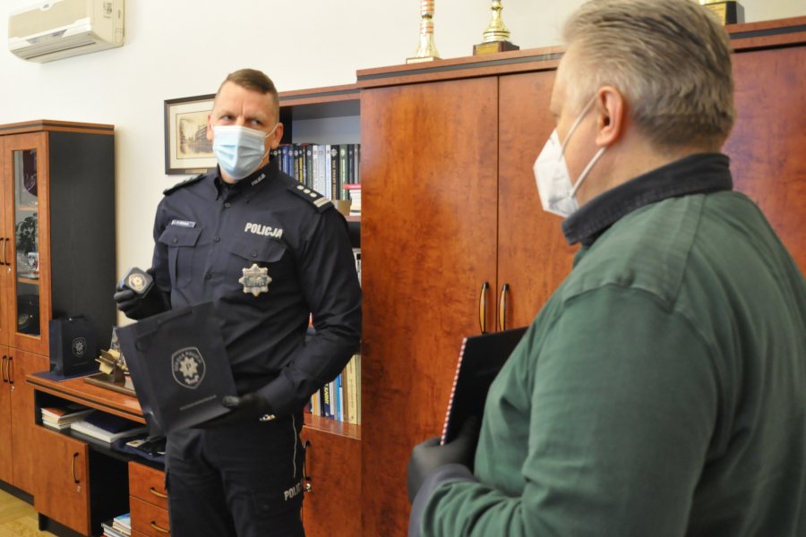 Wręczenie podziękowań na zakończenie służby, medalu z okazji jubileuszu służby oraz wyróżników Szkoły odbyło się gabinecie Komendanta Słupskiej Szkoły Policji. Insp. Piotrowi Cekale towarzyszyli jego zastępcy: insp. Dorota Przypolska i nadkom. Alina Majchrzak.