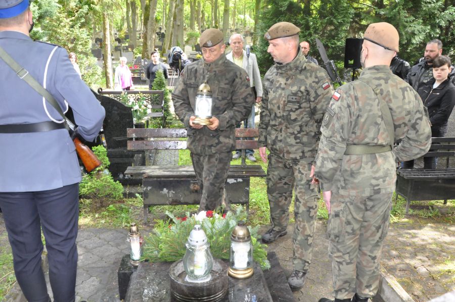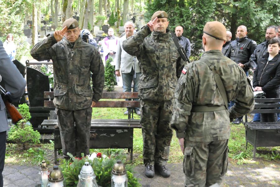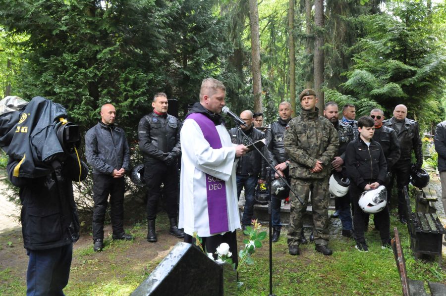 Uczestników uroczystości na cmentarzu przywitał Dowódca 73. Batalionu Lekkiej Piechoty WOT w Słupsku ppłk Bogusław Haftka - lokalny koordynator motocyklowego rajdu pamięci.