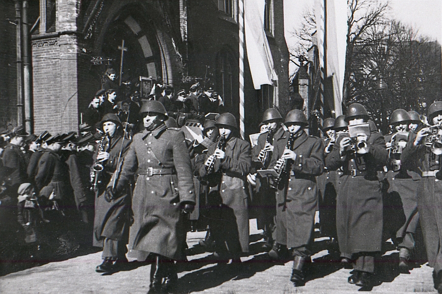Nie była to pierwsza obecność policjantów podczas ważnych uroczystości przed słupskim ratuszem. Już w latach `40. XX wieku słuchacze ówczesnego Centrum Wyszkolenia świętowali przed tym samym ratuszem uroczystość nadania jednostce pierwszego sztandaru, który do dziś znajduje się w Izbie tradycji i Historii Szkoły.
