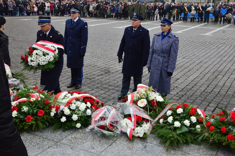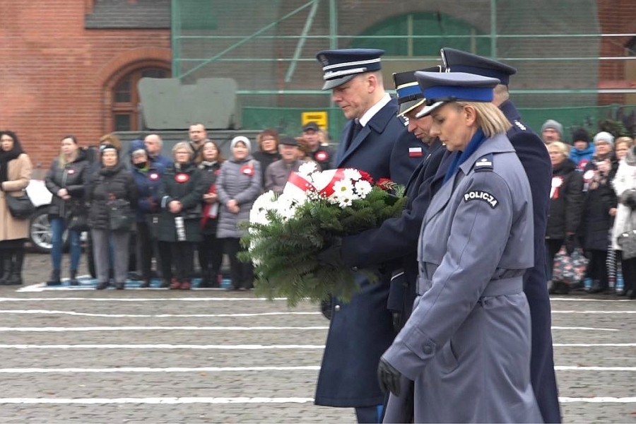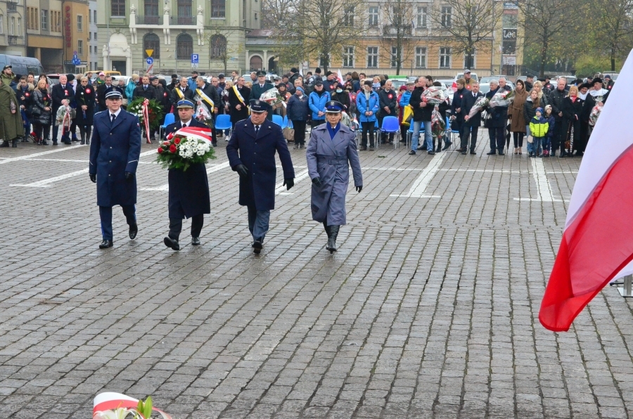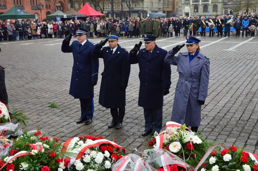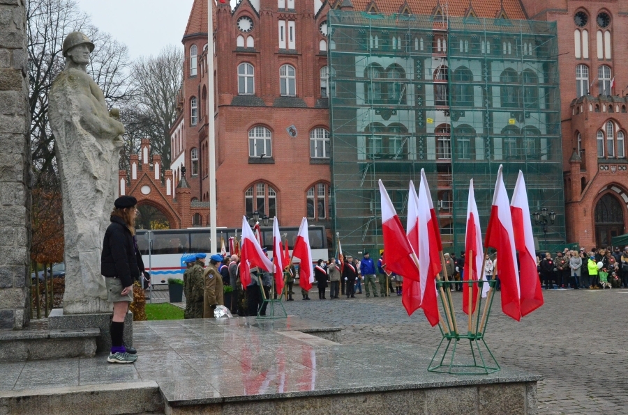 W apelu poległych mowa była między innymi o policjantach Policji Państwowej, którzy po wybuchu II wojny światowej zostali straceni przez NKWD. Mowa była również o radosnym obchodzeniu Święta Niepodległości. Delegacja Policji, Straży Pożarnej i Służby Więziennej złożyła kwiaty pod pomnikiem Żołnierza Polskiego na placu Zwycięstwa. W uroczystości przed ratuszem uczestniczyła też kompania Wojska Polskiego.