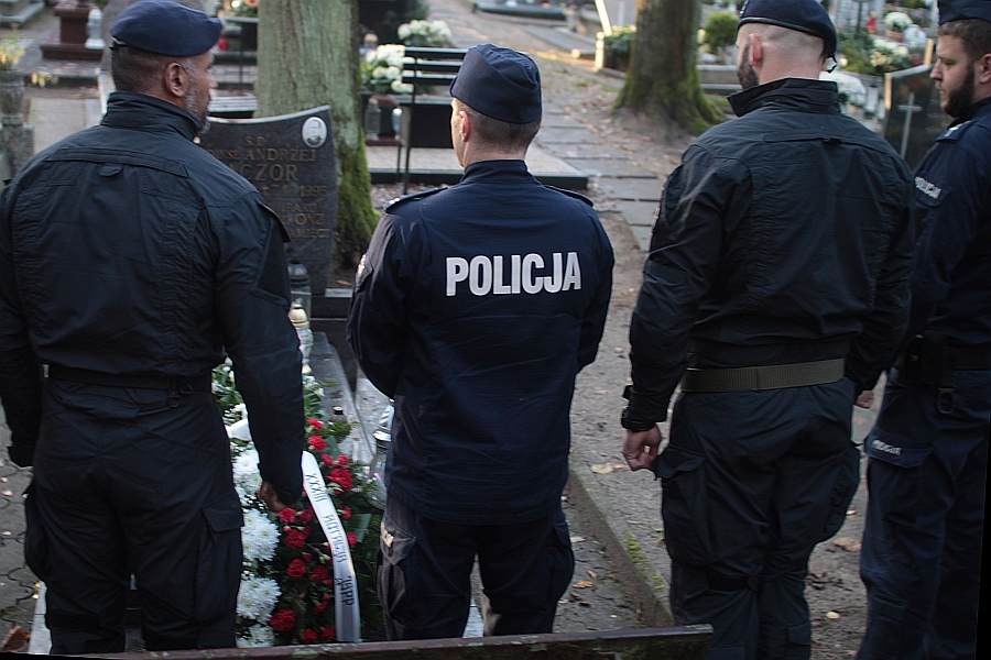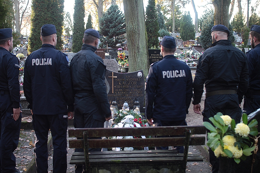 Warta honorowa przy grobie, wieniec i znicz pamięci - w ten sposób hołd swojemu koledze śp. podinsp. Andrzejowi Kaczorowi ze Słupska oddali przedstawiciele XXXIII. zmiany Jednostki Specjalnej Polskiej Policji, która przygotowuje się w słupskiej Szkole Policji do wyjazdu na misję w Kosowie.