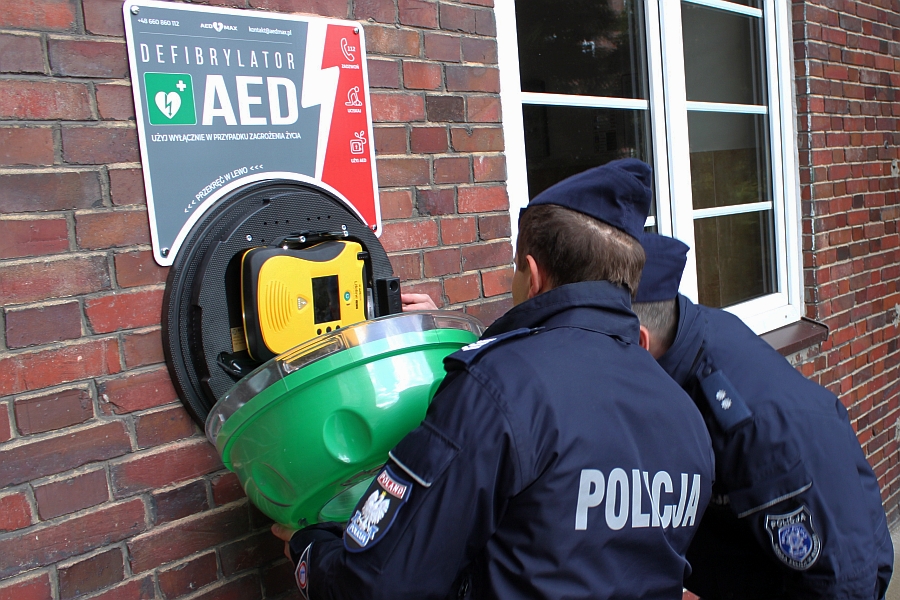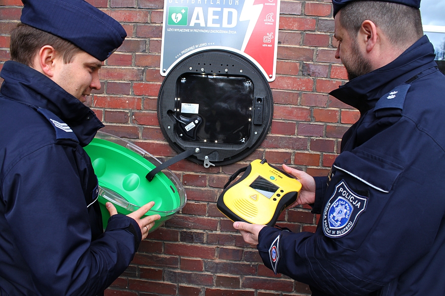 Pierwszy w Słupsku AED umieszczony na zewnątrz budynku, który znajduje się na terenie Szkoły Policji zyskał dodatkowe oznaczenia. Specjalna kapsuła zapewnia odpowiednie warunki przechowywania urządzenia zarówno latem jak i zimą, a tablica informacyjna – łatwiejszą identyfikację.