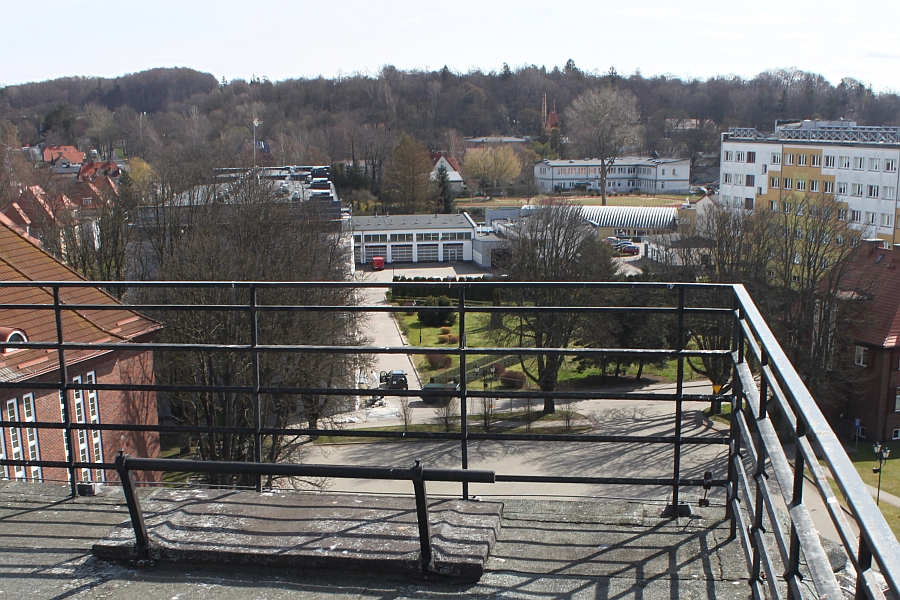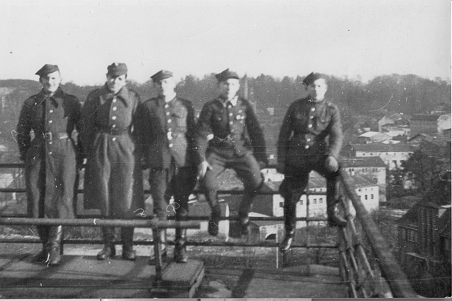 Kolejna grupa słuchaczy wykonała sobie pamiątkowe zdjęcie na szczycie wieży głównego budynku dydaktycznego. Po prawej stronie widać istniejący do dziś budynek, w którym aktualnie urzęduje Zastępca Komendanta Szkoły.