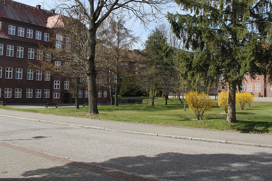 Kolejne ze zdjęć przedstawia akademik „D” a w tle główny budynek dydaktyczny.