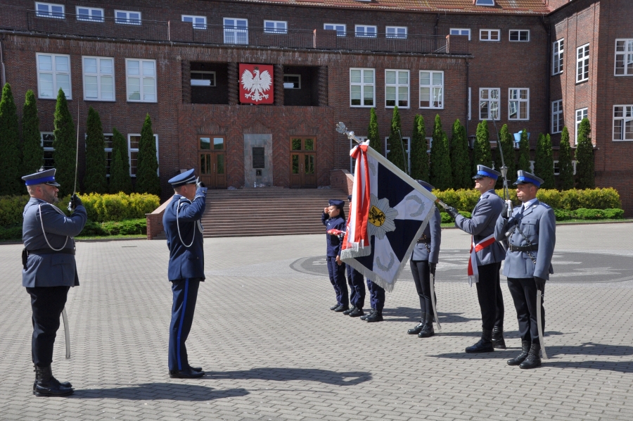 Uroczyste zakończenie szkolenia i wręczenie świadectw odbyło się na głównym placu apelowym słupskiej Szkoły Policji. Było to pierwsze zakończenie na placu od czasu ustania pandemii. Świadectwa słuchaczom wręczył Komendant Szkoły insp. Piotr Cekała wspólnie ze swoim Zastępcą mł.insp. Aliną Majchrzak. Uroczystość rozpoczęła się od podniesienia flagi państwowej na maszt przy dźwiękach Mazurka Dąbrowskiego.