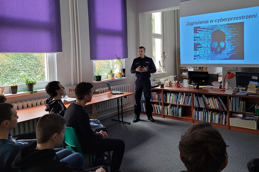 Na kolejnym ze spotkań, tym razem z uczniami Zespołu Szkół Agrotechnicznych, mówiono o zagrożeniach cyberprzestępczością oraz metodach działania stosowanych przez cyberprzestępców. Zajęcia odbyły się w Filii Miejskiej Biblioteki Publicznej przy ulicy Jana Kazimierza w Słupsku.
