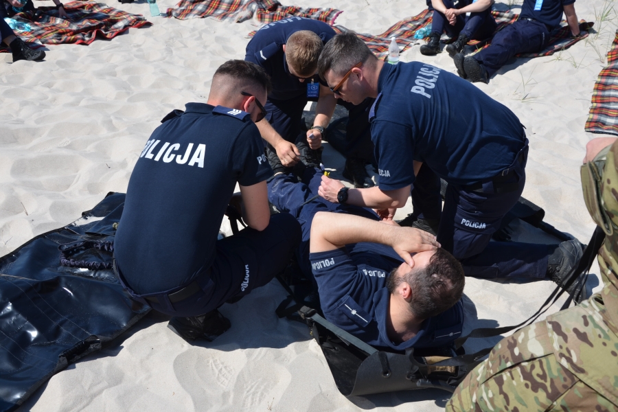 Po porannym teście wiedzy rywalizacja w ramach finału Ogólnopolskich Zawodów Ratowników Policyjnych z Kwalifikowanej Pierwszej Pomocy przeniosła się do Ustki, gdzie odbyły się warsztaty medyczne pod hasłem „Ratownik w zintegrowanym systemie - profesjonalizm w praktyce”.