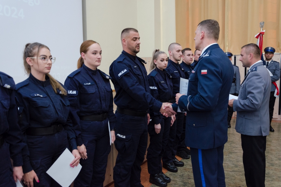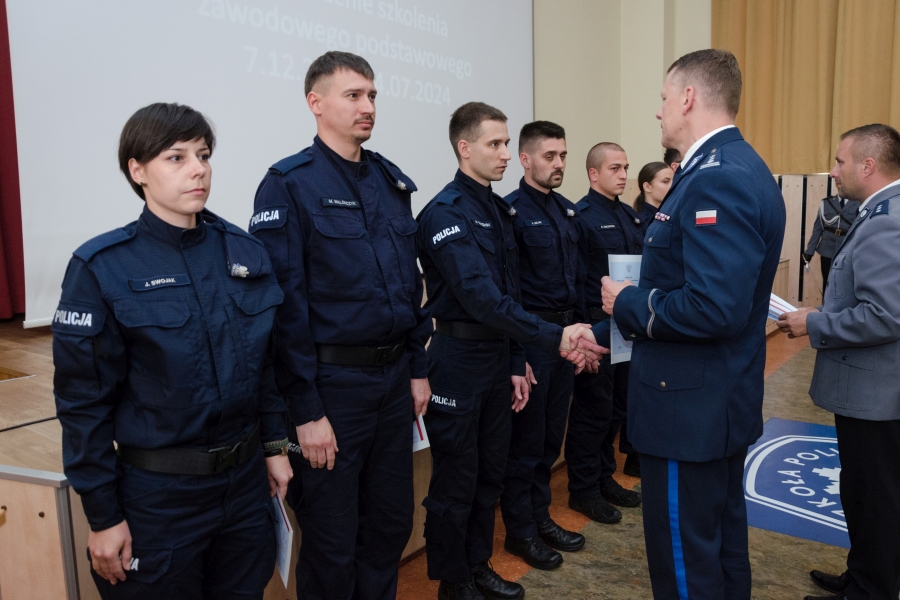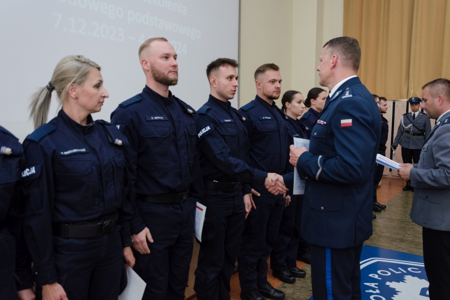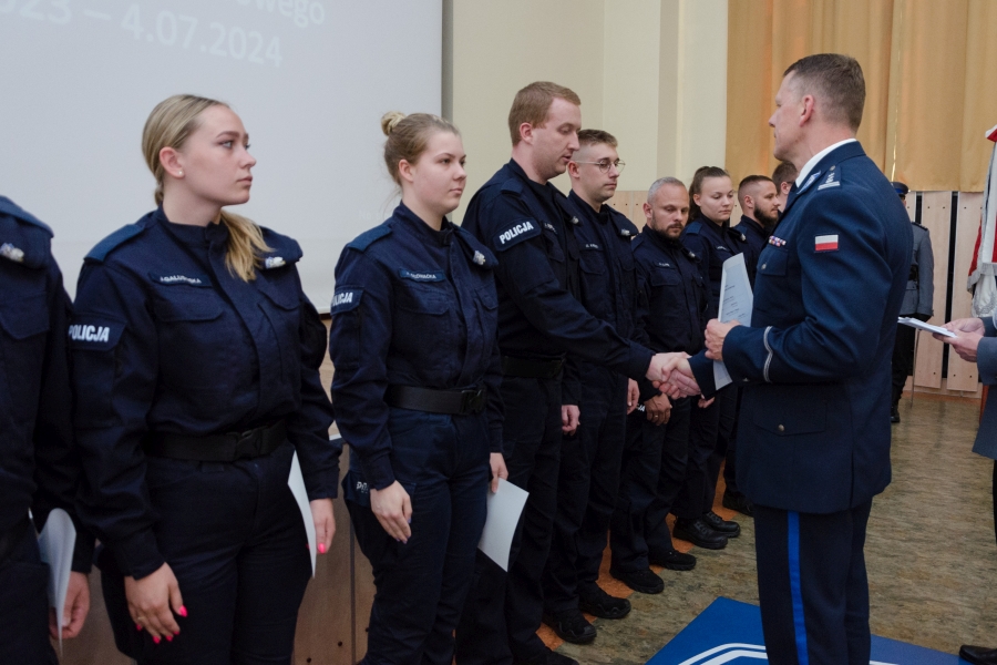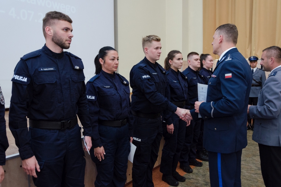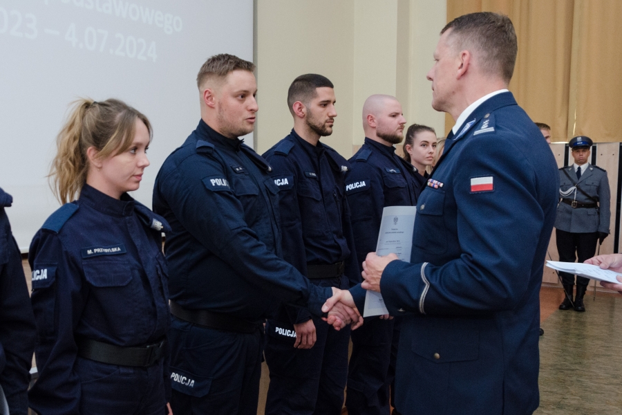 Świadectwa absolwentom wręczył Komendant Szkoły insp. Piotr Cekała. Jako pierwsi otrzymali je ci policjanci, którzy uzyskali tak zwany czerwony pasek na świadectwie. Było to łącznie 20 osób. W dalszej kolejności Komendant Szkoły wręczył świadectwa pozostałym słuchaczom.