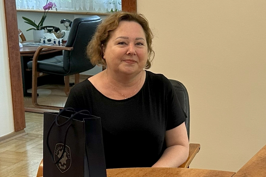 Dzisiaj także Komendant Szkoły pożegnał, odchodzącą na emeryturę, pracowniczkę Wydziału Finansów panią Agnieszkę Kazior. Przez 26 lat pracy w Szkole Policji pani Agnieszka dała się poznać jako bardzo sumienny i zdyscyplinowany pracownik. Do jej głównych obowiązków należała realizacja polityki płacowej Szkoły - naliczanie pensji pracowników i uposażeń policjantów; zajmowała się również księgowością Koleżeńskiej Kasy Oszczędnościowo-Pożyczkowej. W ostatnim dniu pracy w Szkole, Komendant insp. Piotr Cekała wraz z pełniącym obowiązki Zastępcy Komendanta kom. Szymonem Dąbrowskim wręczył pani Agnieszce podziękowania za długoletnią pracę oraz drobny upominek.