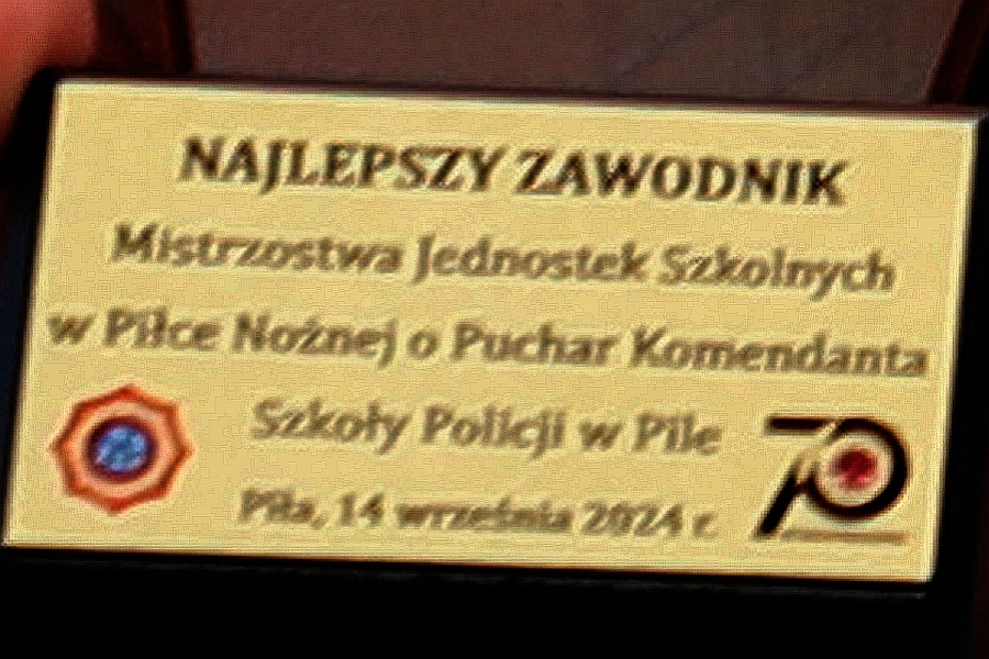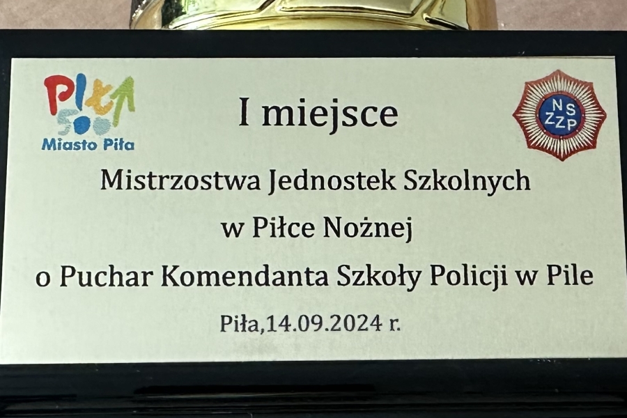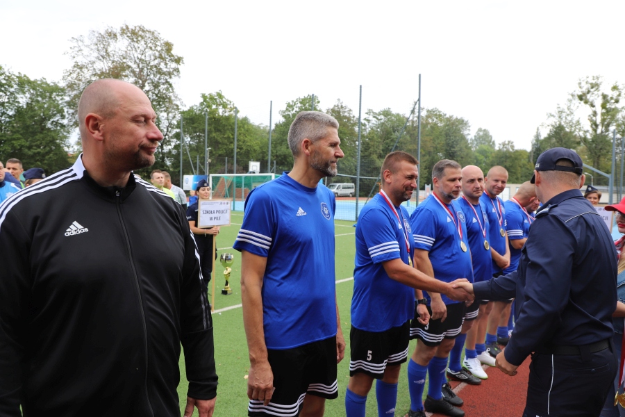 W przededniu oficjalnych obchodów jubileuszu 70-lecia działalności Szkoły Policji w Pile rozegrano turniej piłkarski z udziałem reprezentacji placówek szkolnictwa policyjnego. Po zaciętej walce eliminacyjnej nasza reprezentacja pokonała w meczu finałowym drużynę gospodarzy i zdobyła I-sze miejsce oraz Puchar Komendanta Szkoły Policji w Pile. Dodatkowo, grający w naszej drużynie kom. Szymon Dąbrowski, pełniący obowiązki Zastępcy Komendanta Szkoły, został wybrany najlepszym zawodnikiem Turnieju.