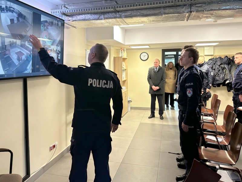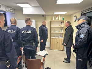 Przed oficjalnym rozpoczęciem spotkania Wiceminister zwiedził kilka obiektów szkoleniowych i symulacyjnych, aby w telegraficznym skrócie zapoznać się z systemem i warunkami, w jakich kształcą się nowo przycięci do służby w Policji funkcjonariusze.