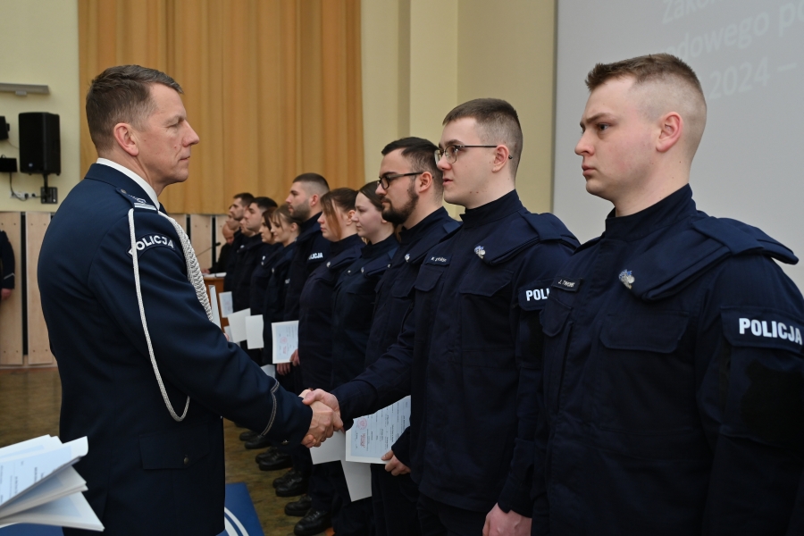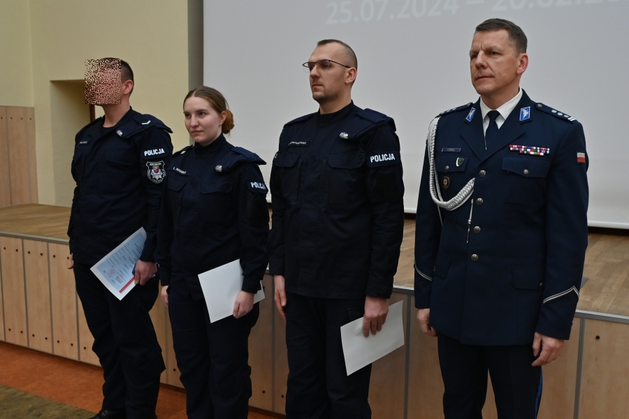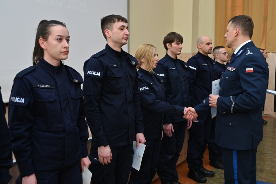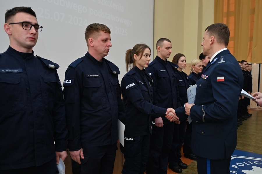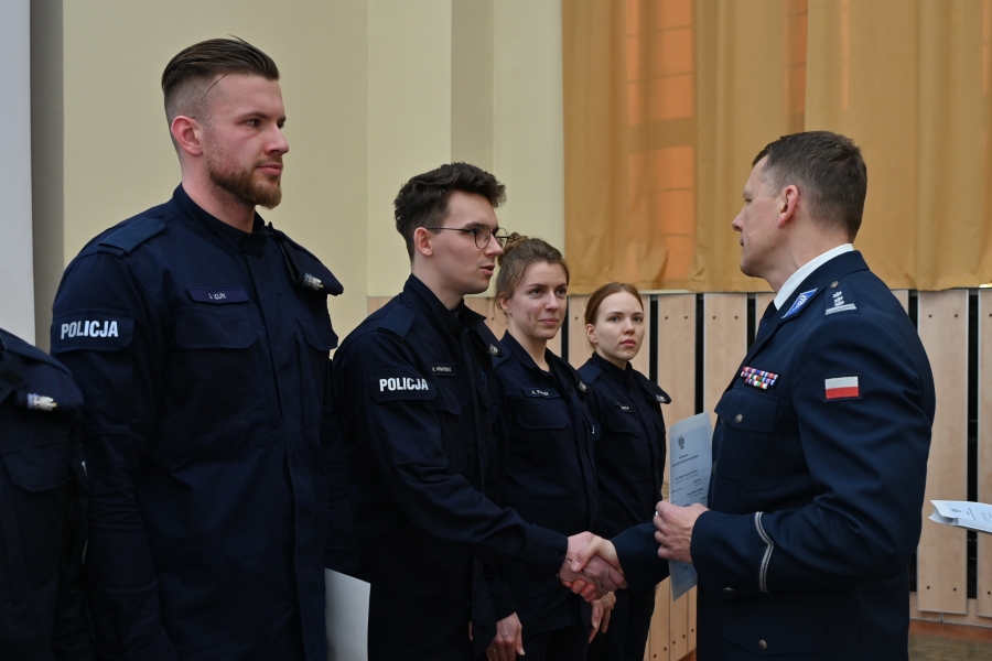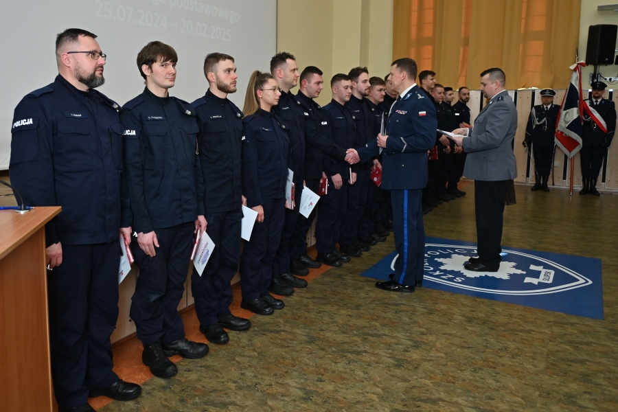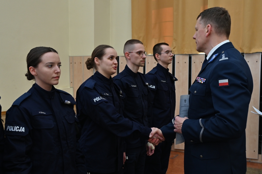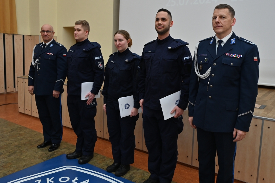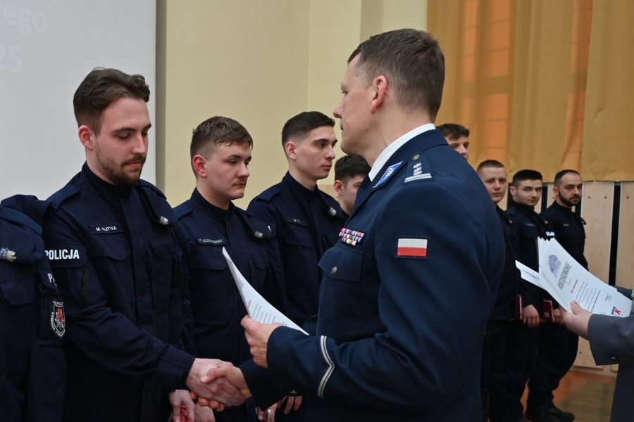 Świadectwa absolwentom wręczył Komendant Szkoły insp. Piotr Cekała. Jako pierwsi otrzymali je ci policjanci, którzy uzyskali tak zwany czerwony pasek na świadectwie. Oprócz wyróżnienia w trakcie uroczystości, policjanci ci będą mogli również przystąpić bezpośrednio do egzaminu podoficerskiego z pominięciem szkolenia. Świadectwa z najwyższymi ocenami otrzymali: