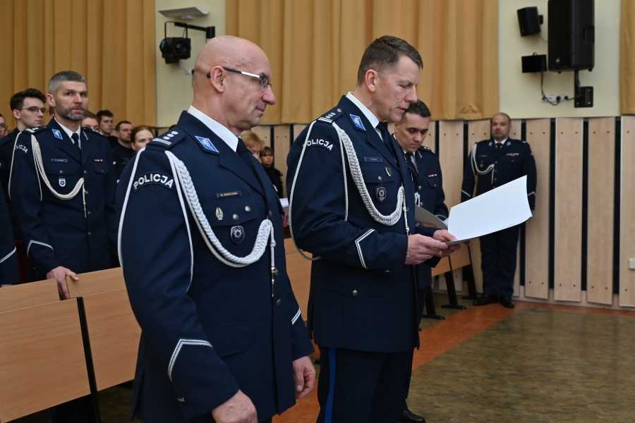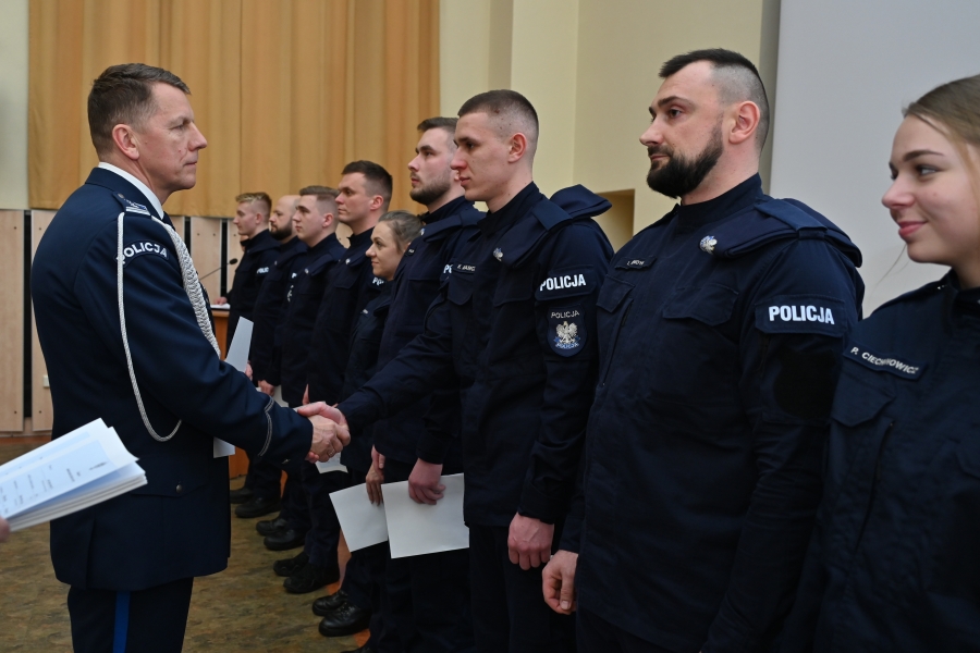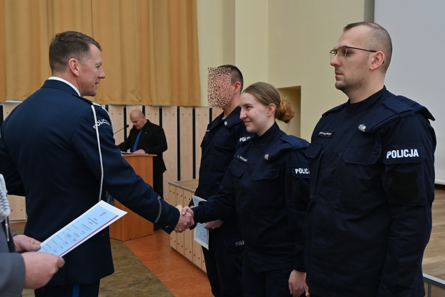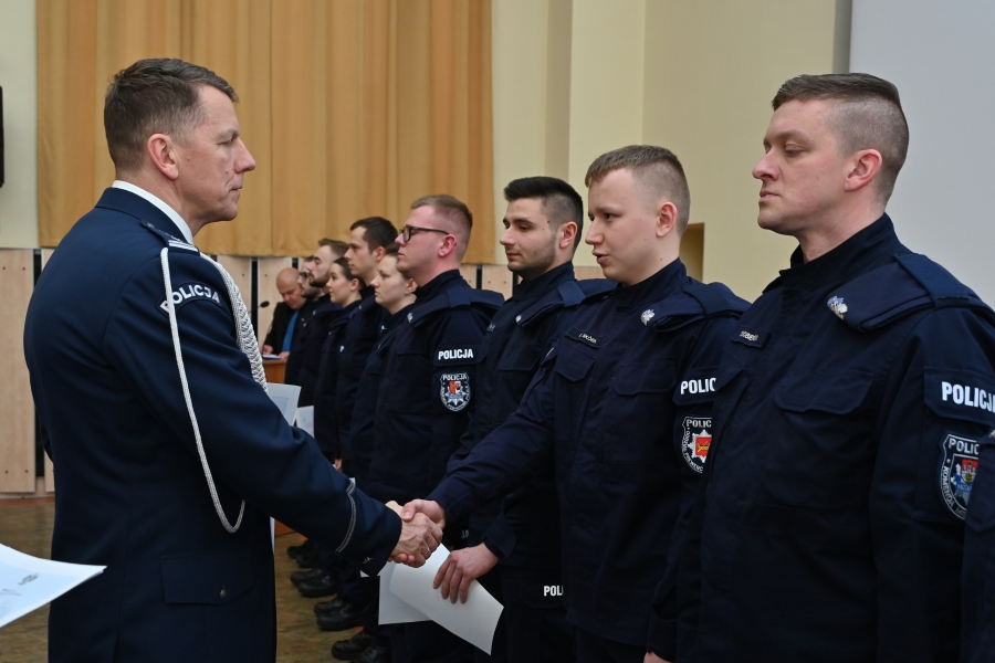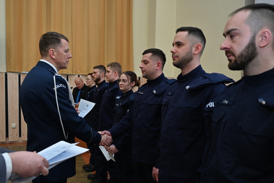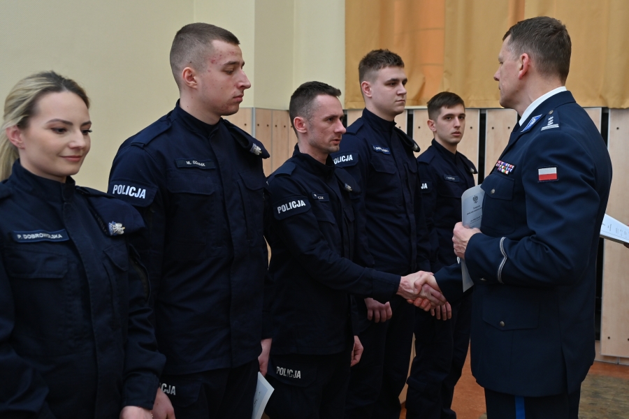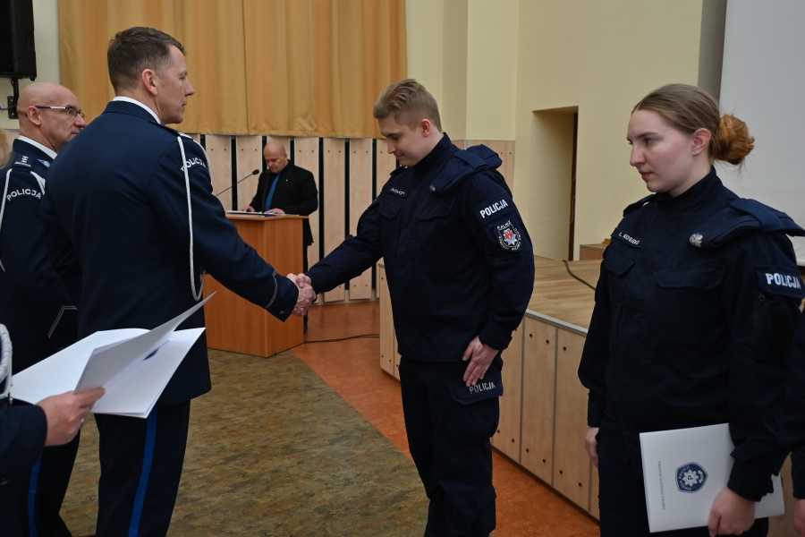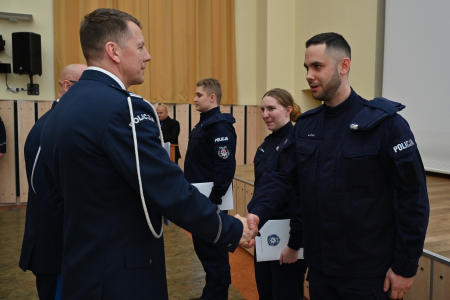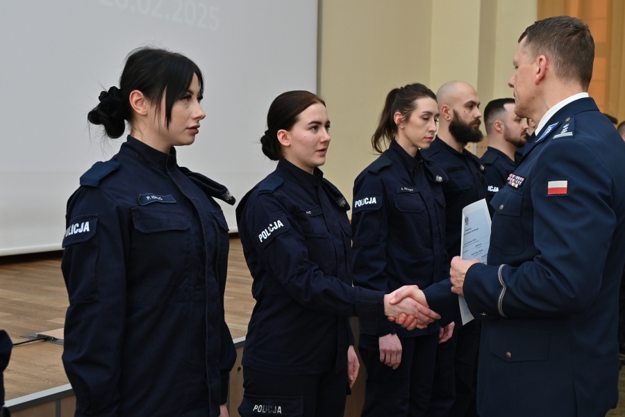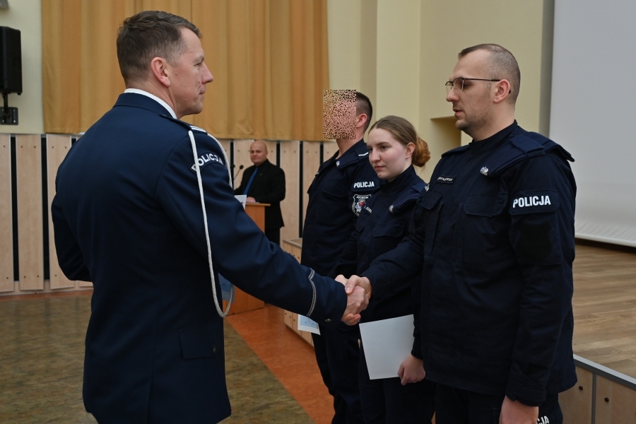 Świadectwa absolwentom wręczył Komendant Szkoły insp. Piotr Cekała. Jako pierwsi otrzymali je ci policjanci, którzy uzyskali tak zwany czerwony pasek na świadectwie. Oprócz wyróżnienia w trakcie uroczystości, policjanci ci będą mogli również przystąpić bezpośrednio do egzaminu podoficerskiego z pominięciem szkolenia. Świadectwa z najwyższymi ocenami otrzymali: