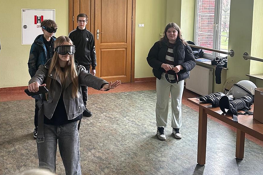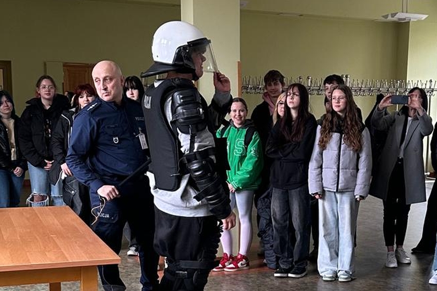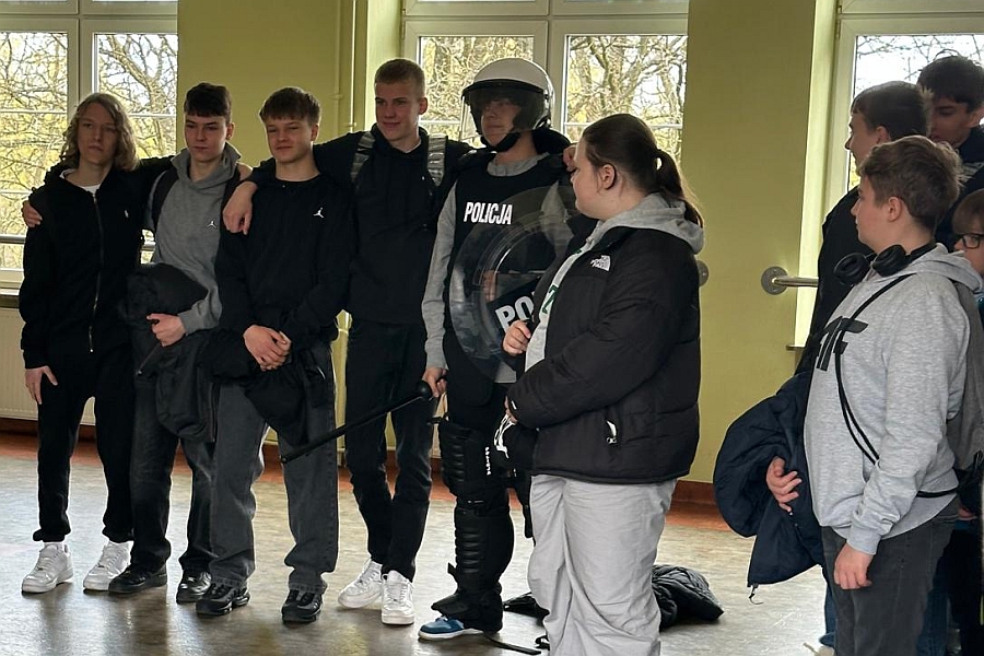 W naszej Szkole natomiast gościli uczniowie ze Szkoły Podstawowej nr 2 w Ustce, którzy oprócz zwiedzenia samego terenu szkoły mogli zapoznać się z elementami policyjnego wyposażenia. Duże zainteresowanie wśród uczniów wzbudziła prezentacja alko- i narkogogli, które po założeniu symulują obraz widziany przez osobę, która spożyła alkohol lub substancje odurzające. Na zakończenie wizyty uczniowie zrobili sobie także wspólne zdjęcie na schodach głównego budynku dydaktycznego.