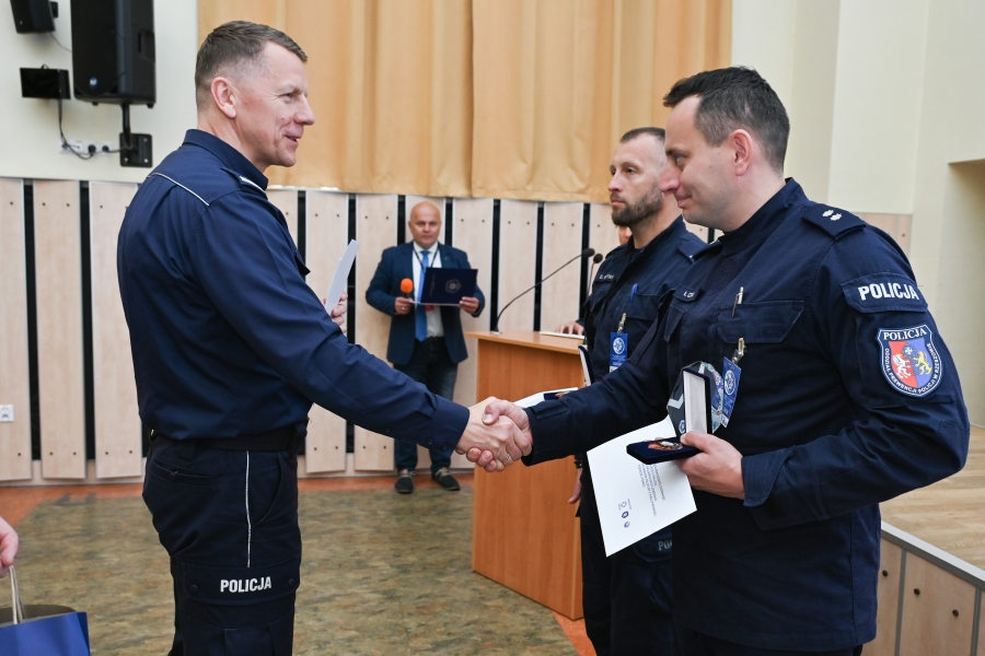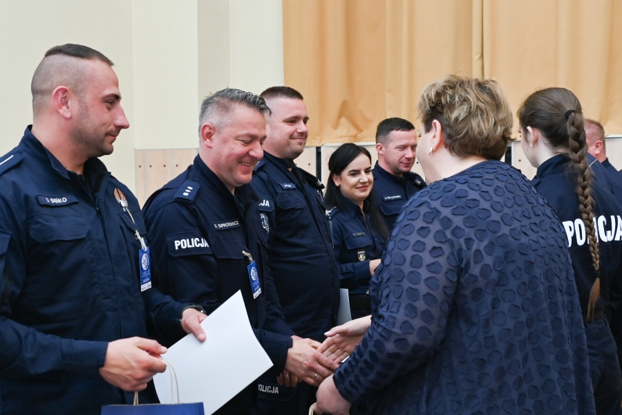 Dodatkowe upominki wręczył także Naczelnik Wydziału Ochrony Pracy Komendy Głównej Policji podkom. Kamil Chojdak wraz z Koordynator Ratownictwa Medycznego Policji panią Małgorzatą Wlaź.
