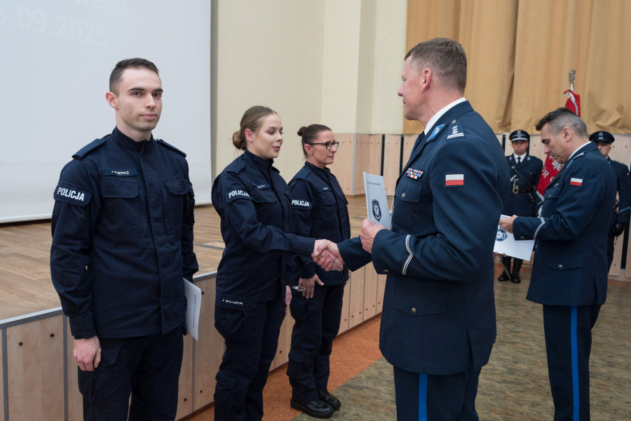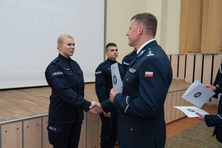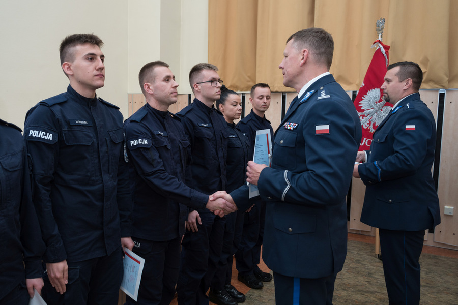 Świadectwa absolwentom wręczył Komendant Szkoły insp. Piotr Cekała. Jako pierwsi otrzymali je ci policjanci, którzy uzyskali tak zwany czerwony pasek na świadectwie. Oprócz wyróżnienia w trakcie uroczystości, policjanci ci będą mogli również przystąpić bezpośrednio do egzaminu podoficerskiego z pominięciem szkolenia.