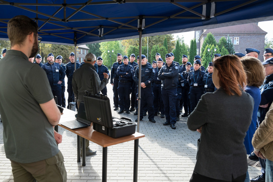 Pokaz nowoczesnych systemów służących do wykrywania oraz neutralizacji dronów odbył się na głównym placu apelowym Szkoły Policji. Przedsięwzięcie zostało zorganizowane z myślą o wykładowcach i słuchaczach szkoły, którzy mogli zapoznać się z rozwiązaniami wykorzystywanymi w ochronie ludzi i infrastruktury przed zagrożeniami ze strony bezzałogowych statków powietrznych.