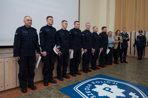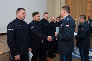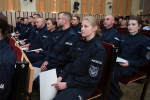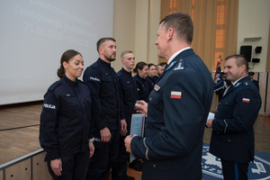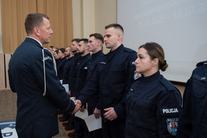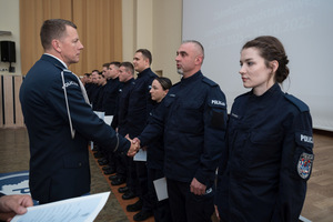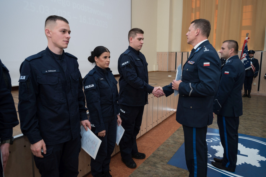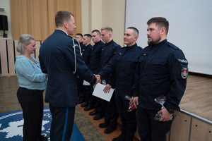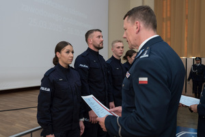 Świadectwa absolwentom wręczył Komendant Szkoły insp. Piotr Cekała. Jako pierwsza, świadectwo z czerwonym paskiem otrzymała post. Karolina Leoniuk z Komendy Powiatowej Policji w Kartuzach. Oprócz wyróżnienia we trakcie uroczystości, policjantka ta będzie mogła również przystąpić bezpośrednio do egzaminu podoficerskiego z pominięciem szkolenia.