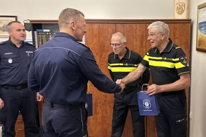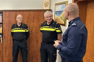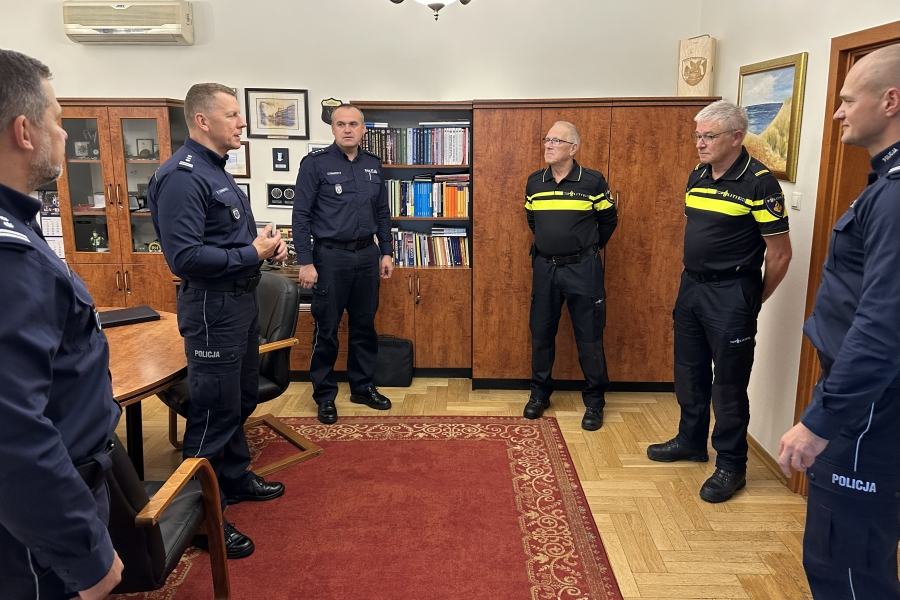 W poniedziałek przed południem przedstawiciele Policji Królestwa Niderlandów Wim Dekker i Ton Wanders spotkali się podczas krótkiej wizyty roboczej z Komendantem Szkoły insp. Piotrem Cekałą oraz jego zastępcami mł.insp. Danielem Krencem oraz nadkom. Szymonem Dąbrowskim. Podczas rozmowy mowa była między innymi o funkcjonowania Escapetrucka oraz roli jaką pełnią policyjni wolontariusze Królestwa Niderlandów podczas całej akcji.