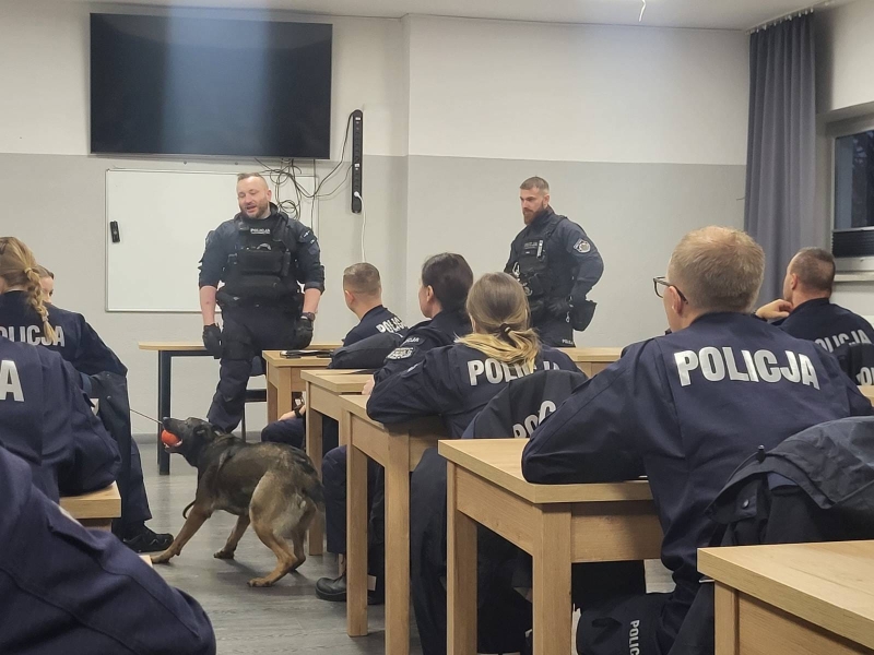 W jaki sposób prowadzone jest szkolenie psa służbowego oraz jak wygląda jego służba w Policji - takie między innymi pytania zadawali słuchacze szkolenia zawodowego podstawowego uczestniczący w zajęciach fakultatywnych z przewodnikami psów służbowych z Komendy Miejskiej Policji w Koszalinie.