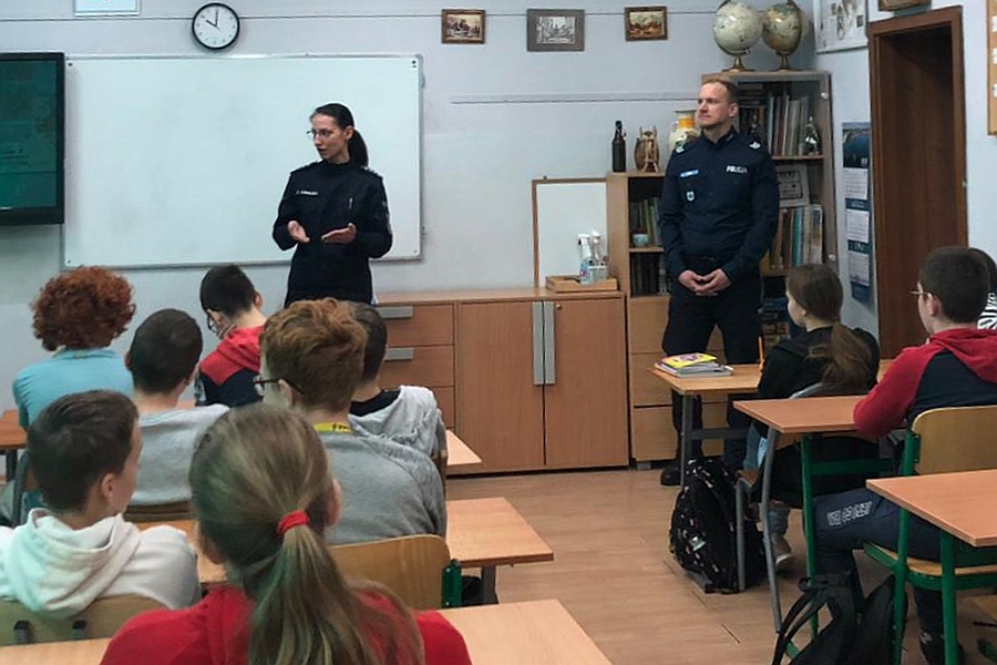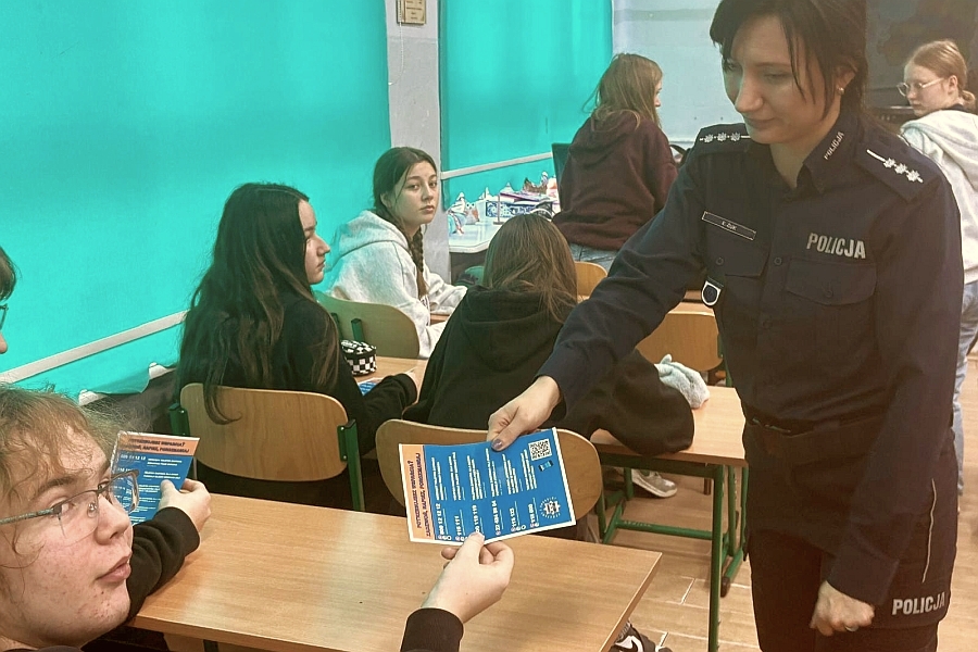 W trakcie zajęć asp.szt. Emilia Kowalska, st.asp. Edyta Żuk, oraz sierż.szt. Kacper Kempa rozdali również ulotki informacyjne z numerami telefonów zaufania dla dzieci i młodzieży, pod którymi całodobowo można uzyskać wsparcie i pomoc.