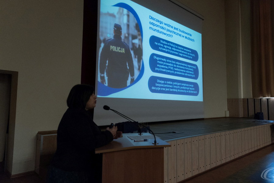 Lekarz psychiatra Magdalena Piekarec (Zastępca Dyrektora do spraw lecznictwa Centrum Zdrowia Psychicznego w Słupsku) poszerzyła tę perspektywę o tematykę stanów nagłych w psychiatrii - sytuacji, w których liczy się nie tylko reakcja profesjonalna, lecz również czas, spokój i umiejętność oceny ryzyka. Jej wykład zwrócił uwagę na to, że funkcjonariusze, jako osoby często stykające się z kryzysami psychicznymi obywateli, muszą jednocześnie umieć rozpoznać podobne stany w sobie i swoich współpracownikach.