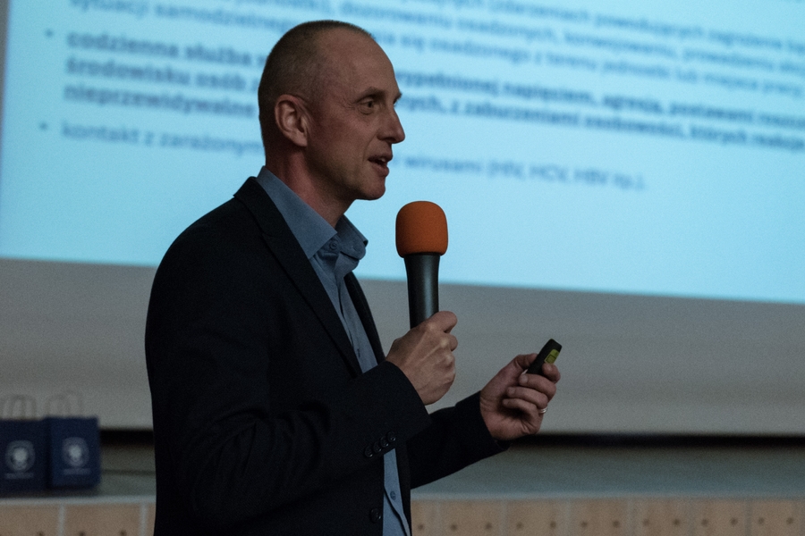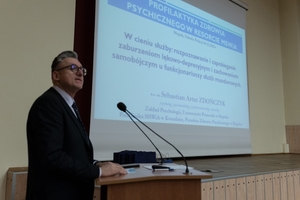 Już w pierwszym wystąpieniu dr Sebastian Zdończyk (Uniwersytet Pomorski oraz Poradnia Zdrowia Psychicznego Polikliniki MSWiA w Słupsku) zwrócił uwagę na to, że zaburzenia lękowe, depresyjne oraz zachowania samobójcze nie są abstrakcyjną kategorią medyczną, lecz realnym zagrożeniem, z którym mierzą się funkcjonariusze formacji mundurowych. Podkreślił znaczenie wczesnego rozpoznawania sygnałów ostrzegawczych, a także rolę przełożonych i współpracowników w tworzeniu środowiska, które nie piętnuje trudności, lecz umożliwia ich konstruktywne przepracowanie.