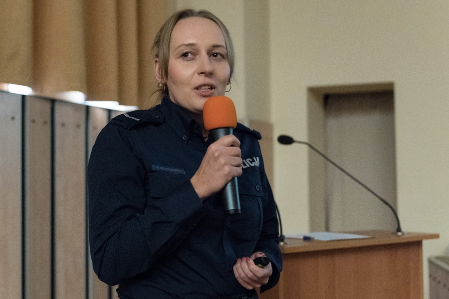 Program wsparcia oferowanego w samej Szkole Policji w Słupsku przedstawiła psycholog sierż. Kamila Wojciukiewicz (Zakład Ogólnozawodowy Szkoły Policji w Słupsku), omawiając formy pomocy psychologicznej kierowane do słuchaczy i pracowników. Jej wystąpienie pokazało, że profilaktyka nie jest dodatkiem do szkolenia policyjnego, lecz jego integralnym elementem - niezbędnym, aby przygotować przyszłych funkcjonariuszy do pracy, w której presja, odpowiedzialność i nieprzewidywalność zdarzeń są codziennością.