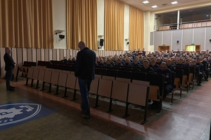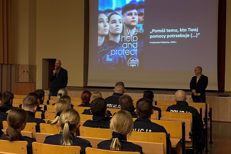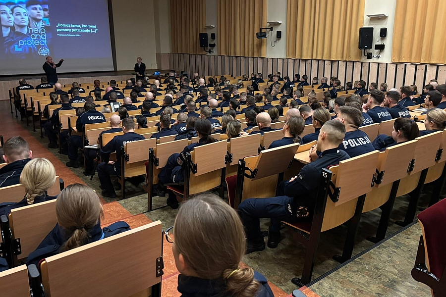 Wykład w auli słupskiej Szkoły Policji. -