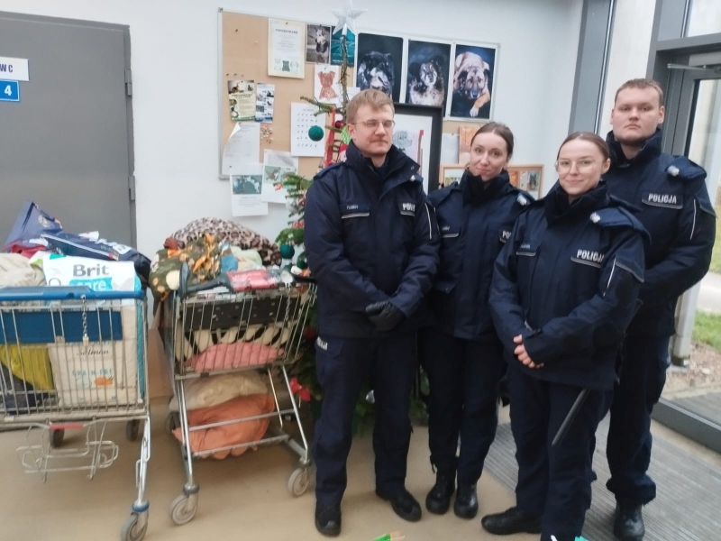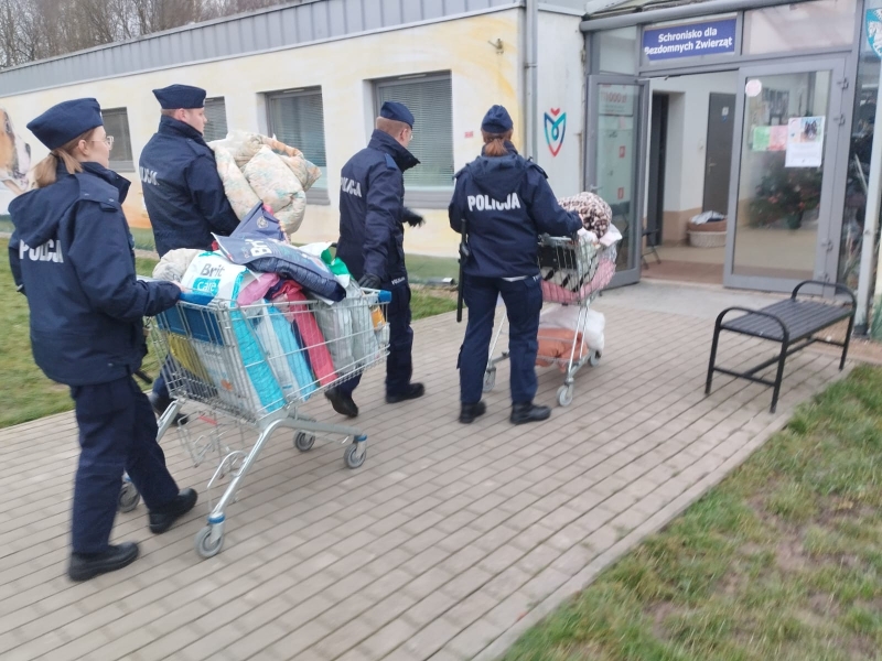 Karma dla psów i kotów, obroże, smycze, a także koce i kołdry zebrali w ramach akcji wolontaryjnej słuchacze Szkoły Policji w Słupsku. Wszystkie zebrane rzeczy przekazano do koszalińskiego schroniska dla zwierząt.