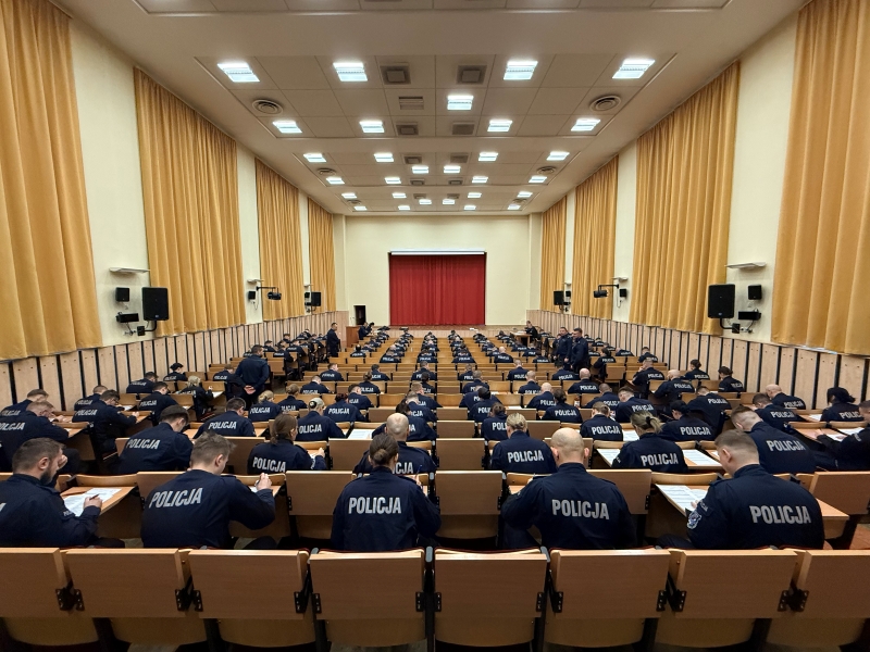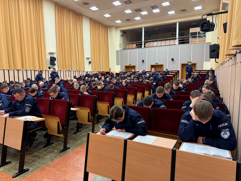 W godzinach porannych, dwie kompanie słuchaczy, które kończą dziś swoje szkolenie, przystąpiły do rozwiązywania testu składającego się z 80 pytań. Na udzielenie odpowiedzi policjanci mieli 80 minut, czyli średnio 1 minutę na każde pytanie. W słupskiej Szkole Policji do testu przystąpiło 132 policjantów i policjantek.