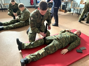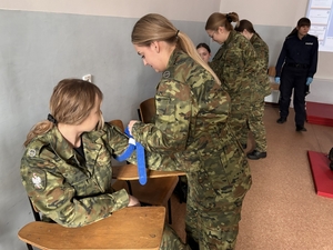 Ponadto dla studentów zostały zorganizowane zajęcia praktyczne z zakresu pierwszej pomocy. Wykładowcy skupili się na zasadach zastosowania opaski uciskowej, w celu pomocy innej osobie, jak i samemu sobie. Zajęcia cieszyły się żywym zainteresowaniem i okazały się bardzo owocne.