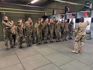 Następnie studenci, podzieleni na mniejsze grupy, mieli możliwość przyjrzenia się z bliska praktycznym aspektom nauki policyjnego rzemiosła. W trakcie oprowadzania zapoznali się z obiektami symulacyjnymi znajdującymi się na terenie Szkoły, zwiedzili obiekty strzelnicy, ale także zapoznali się ze sprzętem wykorzystywanym przez Oddziały Prewencji Policji. Dodatkowo mogli porównać warunki mieszkalne, które panują na terenie Szkoły z tym co znajduje się u nich w placówce.