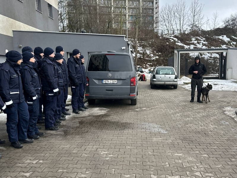 Dodatkowym smaczkiem podczas wizyty była możliwość spotkania się z przewodnikiem psa służbowego. Słuchaczom zostały zaprezentowane umiejętności psa oraz jego możliwości w przypadku obezwładniania osób.