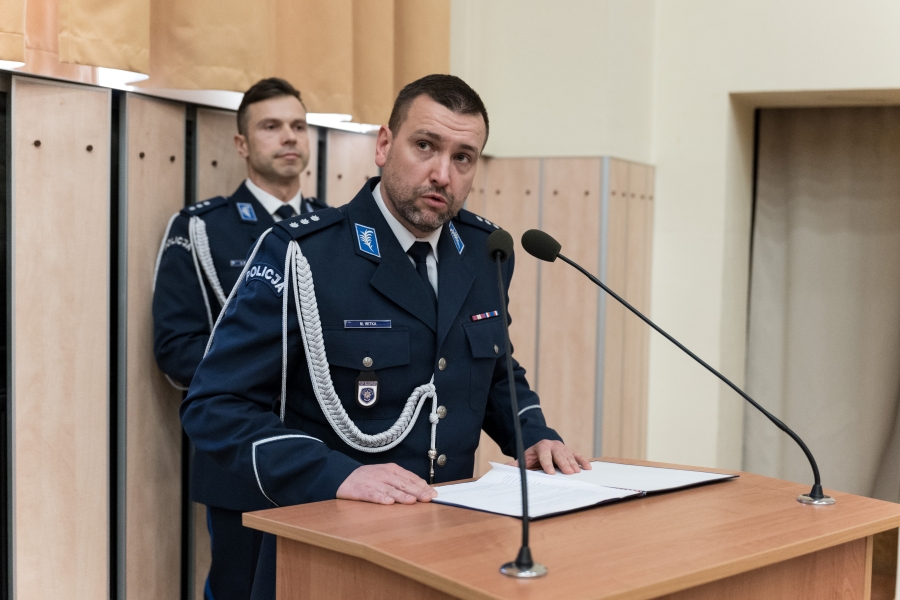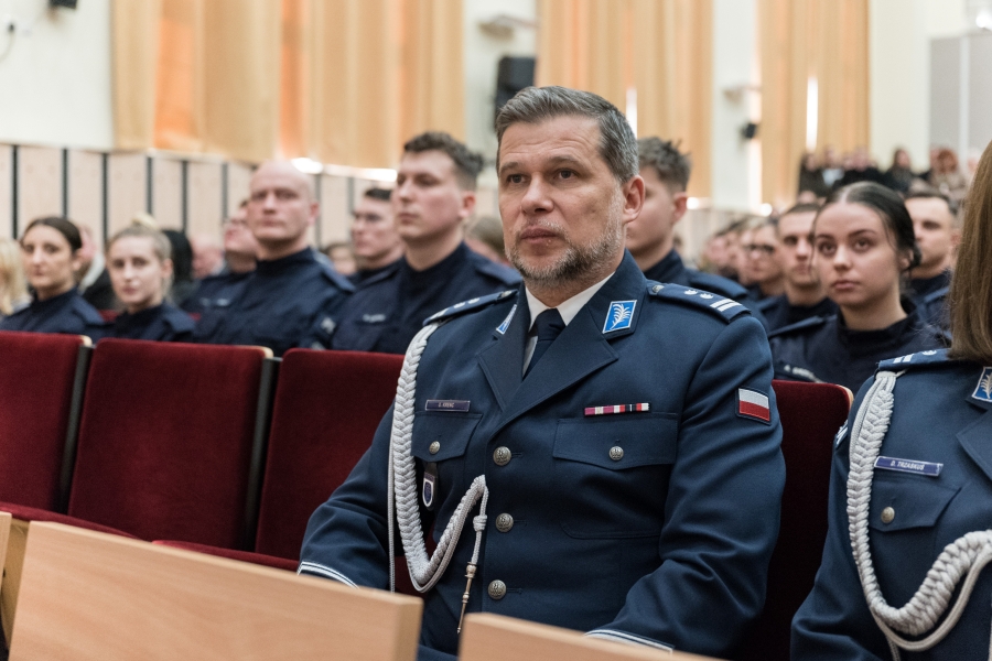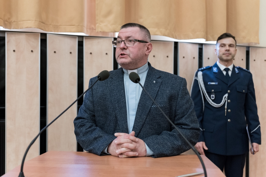 Kapelan Szkoły Policji w Słupsku ks. kan. Wojciech Filimon oprócz gratulacji wskazał także na postawę służby każdego policjanta, który niesie pomoc nawet tam, gdzie wydawałoby się, że nie jest ona potrzebna. Podkreślił także, aby zawsze, nawet podczas najtrudniejszych interwencji, dostrzegać człowieczeństwo drugiej osoby i kierować się honorem służby.