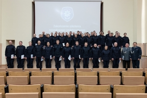 W pierwszej kolejności Zastępca Komendanta Szkoły mł. insp. Daniel Krenc wręczył świadectwa absolwentom, którzy ukończyli szkolenie zawodowe podstawowe z wyróżnieniem, tzw. czerwonym paskiem. W kończącej się edycji szkolenia były to łącznie 48 osób.