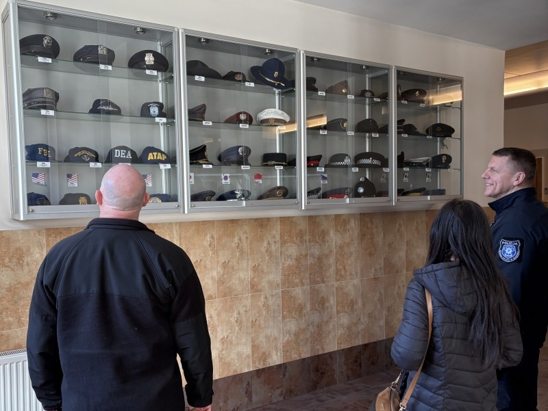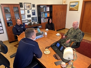 Komendant Szkoły insp. Piotr Cekała zapoznał Dowódca Bazy w Redzikowie Capt. Timothy Battles z bieżącą działalnością jednostki, której głównym zadaniem jest szkolenie nowoprzyjętych do służby policjantów na szkoleniu zawodowym podstawowym.