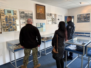 Dowódca miał także możliwość obejrzenia obiektów dydaktycznych i pomieszczeń symulacyjnych, w których na co dzień kształcą się policjanci. Dużym zainteresowaniem cieszyły się także ekspozycje zgromadzone w Izbie Historii i Tradycji Szkoły, szczególnie kolekcja orłów Tadeusza Czaplińskiego, pierwszy sztandar Szkoły oraz ekspozycja ukazująca mord polskich policjantów w Katyniu i Miednoje.
