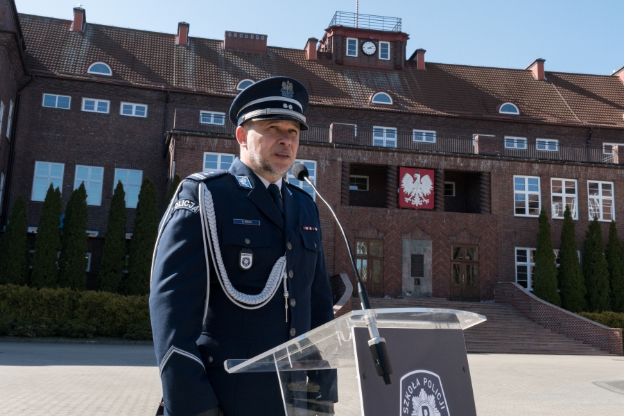 Na zakończenie uroczystości Zastępca Komendanta Szkoły pogratulował słuchaczom dobrych wyników osiągniętych na egzaminie końcowym a także podziękował obecnym na placu apelowym najbliższym - członkom rodzin słuchaczy, którzy wspierali ich przez siedem miesięcy pobytu w Słupsku.