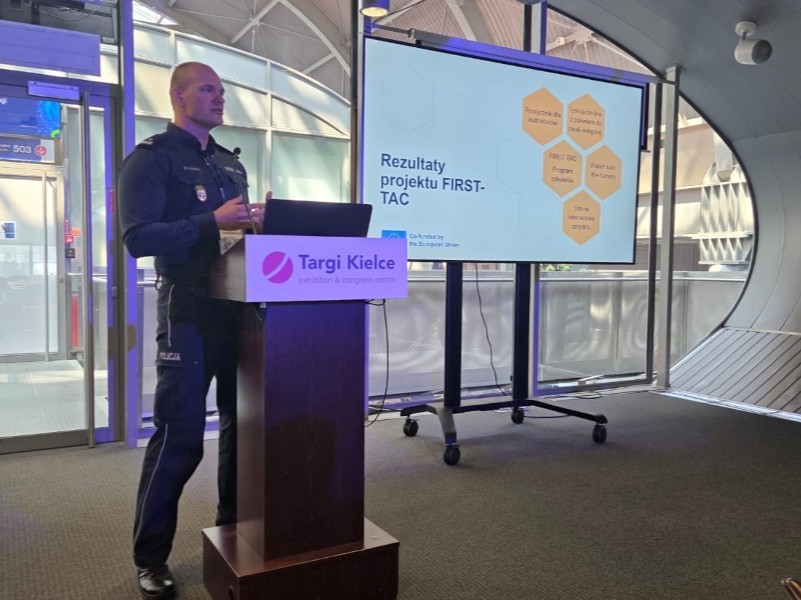 Podinsp. Michał Jaśkowski podsumował uzyskane rezultaty projektu pt. „Opracowanie wspólnego programu nauczania dla służb ratowniczych w zakresie użycia siły i procedur taktycznych pierwszej pomocy FIRST-TAC” w ramach programu Erasmus+, który realizowany był przez policyjne jednostki szkoleniowe z Chorwacji, Bośni i Hercegowiny, Litwy oraz słupskiej Szkoły Policji. Sam projekt dotyczył taktyki policyjnej, użycia siły fizycznej podczas interwencji oraz udzielania pierwszej pomocy włącznie z podstawowymi elementami pierwszej pomocy w warunkach bojowych.