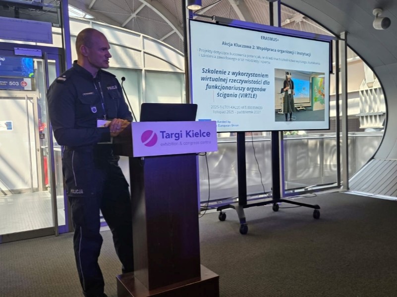 Naczelnik poruszył także kwestie kolejnego programu realizowanego w ramach projektu Erasmus+ pn. „Szkolenie z wykorzystaniem wirtualnej rzeczywistości dla funkcjonariuszy organów ścigania – VIRTLE”, która realizowana jest wraz z jednostkami szkoleniowymi na Litwie i Łotwie.