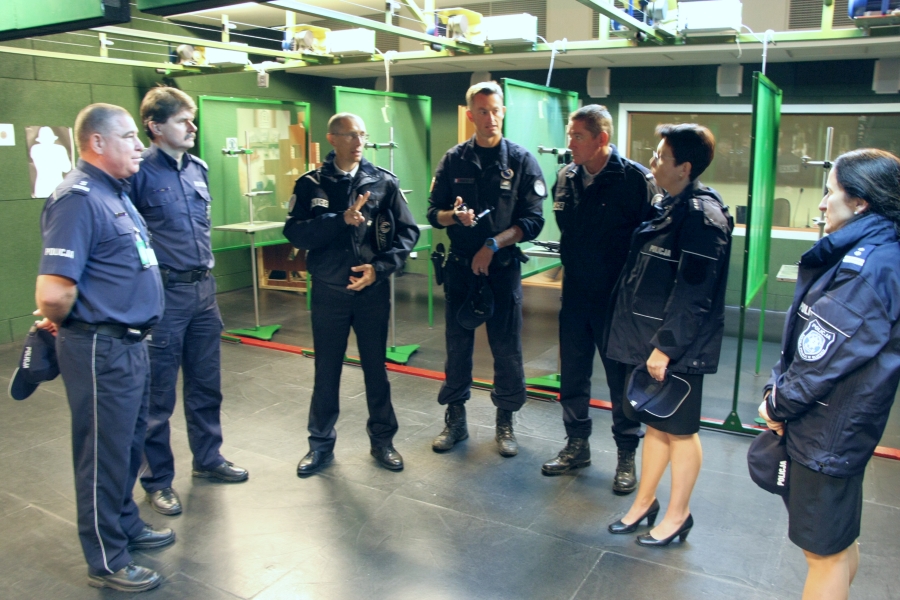 W trakcie wizyty francuscy policjanci szczegółowo zapoznali się z system szkolenia nowych policyjnych kadr, a także z doskonaleniem zawodowym policjantów, którzy pełnią służbę wiele lat. Insp. Frédéric Ménard wraz z towarzyszącymi mu policyjnymi wykładowcami Stéphane`m le Bolloch`em i Laurent`ym Heckel`em zapoznali się szczegółowo z obiektami dydaktycznymi szkoły. Szczeólne uznanie francuzów wzbudziły zamknięte, 50-metrowe osie strzeleckie oraz kompleks obiektów symulacyjnych „Przyziemie 1” i „Przyziemie 2” z nowoczesnym systemem rejestracji multimedialnej i wielona dodatkowymi urządzeniami zbliżającymi symulację prowadzonej interwencji do warunków maksymalnie podobnych do tych, które występują w codziennej służbie.