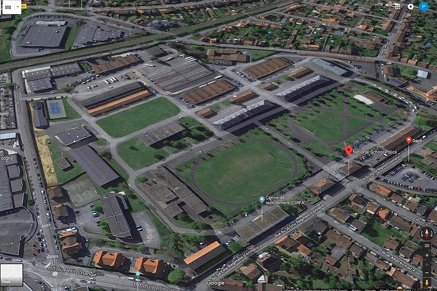 Zdjęcie satelitarne obiektów Krajowej Szkoły Policji w Périgueux. -