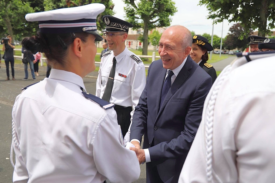 Minister Spraw Wewnętrznych Francji Gérard Collomb w Szkole w Périgueux. -