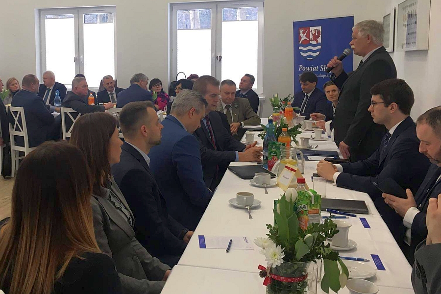 Było to pierwsze po ubiegłorocznych wyborach spotkanie samorządowców powiatu słupskiego. W obradach uczestniczył też wiceminister nauki i szkolnictwa wyższego Piotr Müller oraz wicewojewoda pomorski Mariusz Łuczyk.