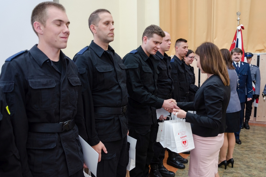 Wyróżnienia i podziękowania - z rąk Komendanta Szkoły oraz zastępcy Prezesa Klubu HDK PCK przy Szkole Policji nadkom. Justyny Kamińskiej i przedstawicielki Regionalnego Centrum Krwiodawstwa i Krwiolecznictwa Iwony Romanowskiej - otrzymała grupa kilkunastu najbardziej aktywnych honorowych dawców krwi.