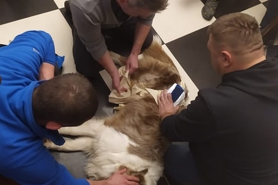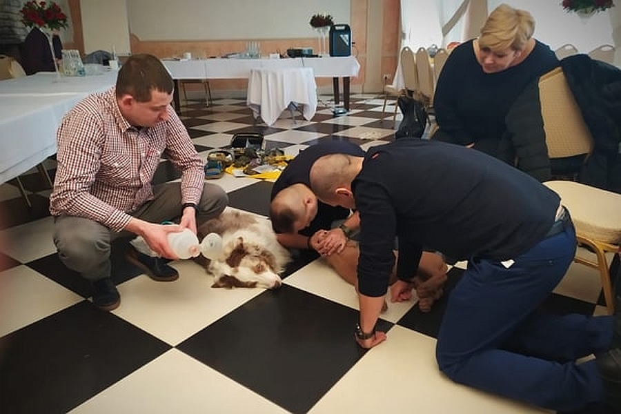 Ratownik pokazał także, jak sprawdzić u psa podstawowe czynności życiowe (oddech i krążenie), a następnie każdy uczestnik prowadził resuscytację krążeniowo-oddechową na specjalnym fantomie psa. Przeszkolenie dotyczyło również udrażniania dróg oddechowych nieprzytomnemu psu, w tym metody udrażniania w przypadku zadławienia.