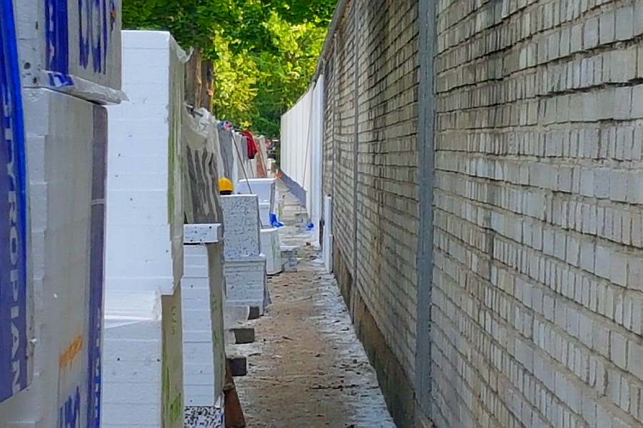 Część ogrodzenia przygotowana do ułożenia warstwy elewacyjnej. -