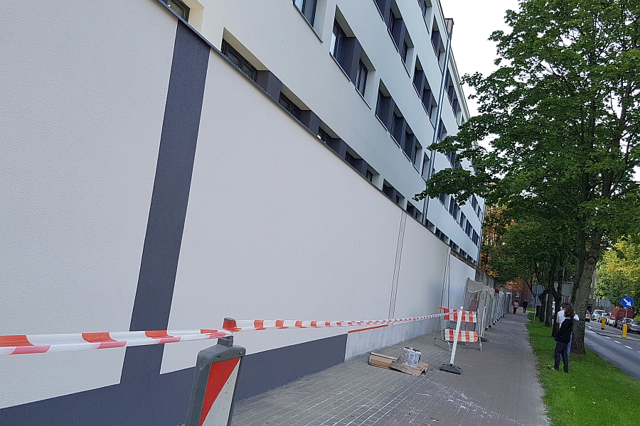 Remont ogrodzenia ma na celu poprawę jego stanu technicznego oraz - poprzez ułożenie nowej elewacji - poprawę estetyki i nawiązanie kolorystyczne do stojącego tuż za nim akademika.