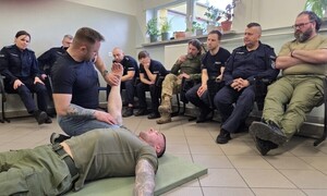 Wykładowcy Zakładu Ogólnozawodowego Szkoły Policji w Słupsku specjalizujący się w zakresie udzielania pierwszej pomocy zorganizowali zajęcia dodatkowe dla 24 uczniów oddziału przygotowania wojskowego Zespołu Szkół Mechanicznych w Słupsku.